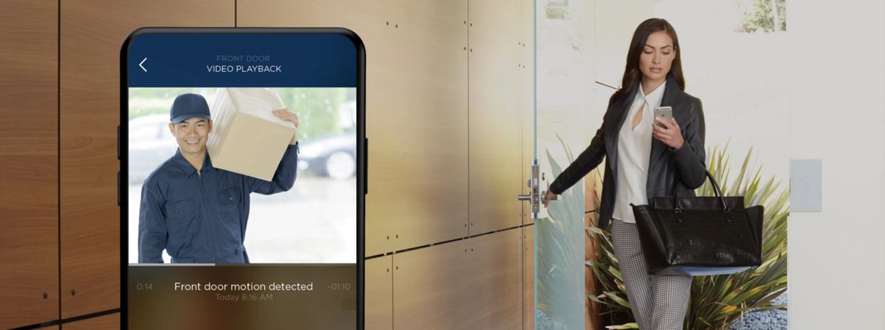 Introducing connected entry for your denlob home, including wide-angle HD camera with video capture, plus two-way intercom. Smart. Seamless. Secure.Monitor your home from your smartphone or tablet, no matter where you are, and relax knowing your home is safe and sound.